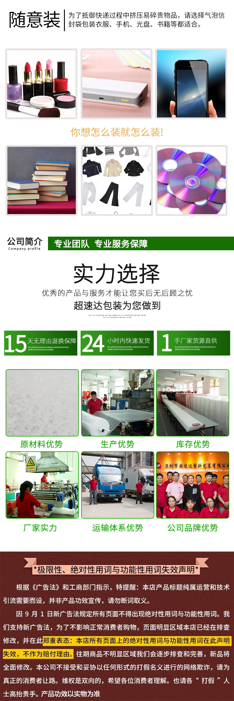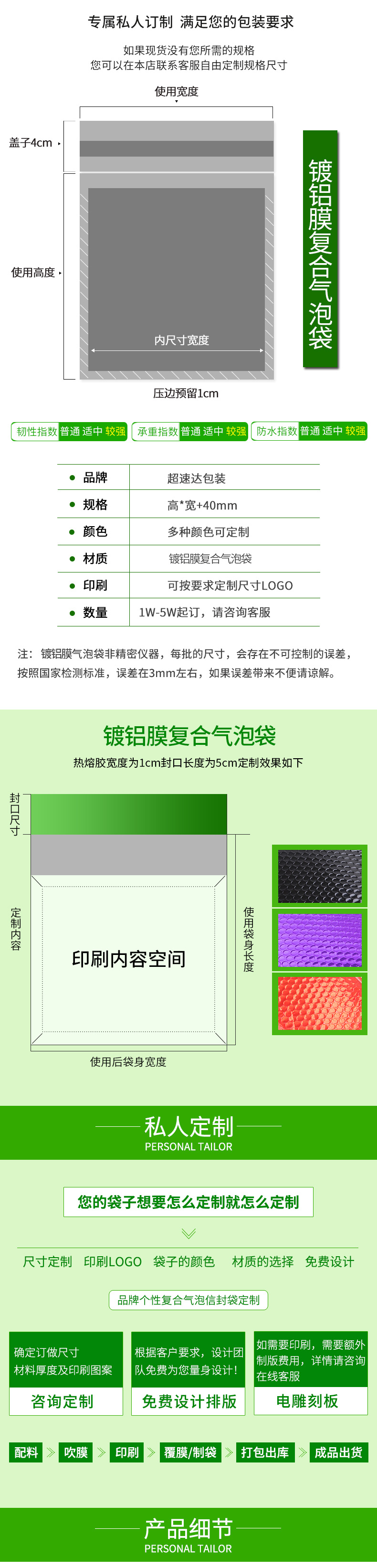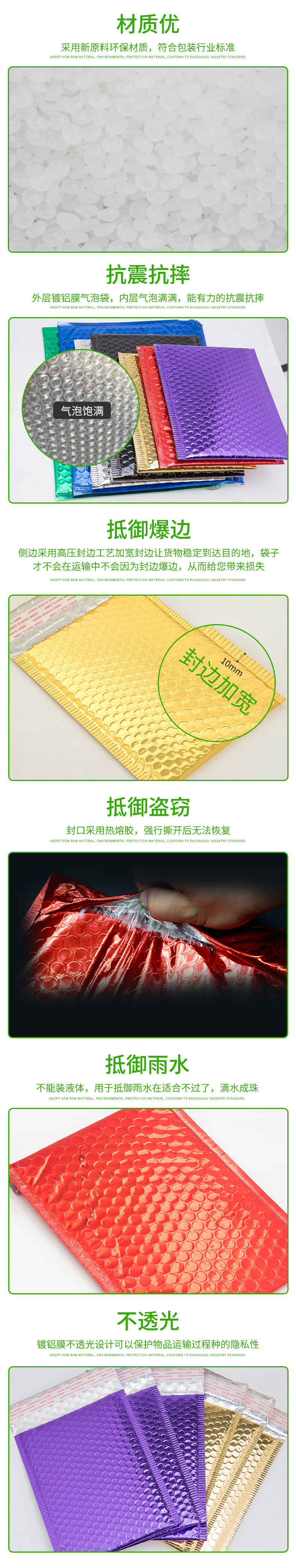 綠色、紫色等等)內(nèi)襯氣泡膜 。