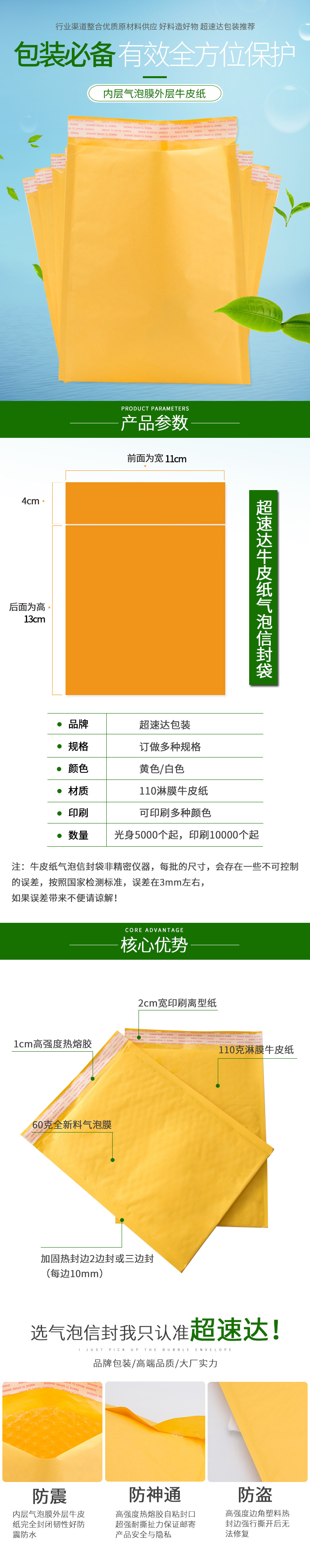 牛皮紙氣泡袋特點1.牛皮紙顏色主要以金黃色為主,也有本色以及白色,美觀大方,外層易書寫,可貼標簽;